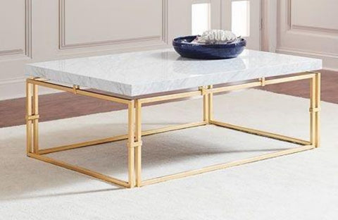 Mesa de centro rectangular premium de mármol y hierro 100% mexicana y elaborada por Artesanos Poblanos.