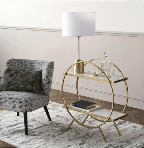 Mesa Bufetera Circus trabajada con cubierta de mármol y bases de hierro.Diseño 100% mexicano y elaborado por Artesanos Poblanos.