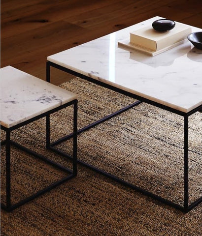Juego de Mesas para sala Classic de mármol y hierro 100% mexicana y elaborada por Artesanos Poblanos.