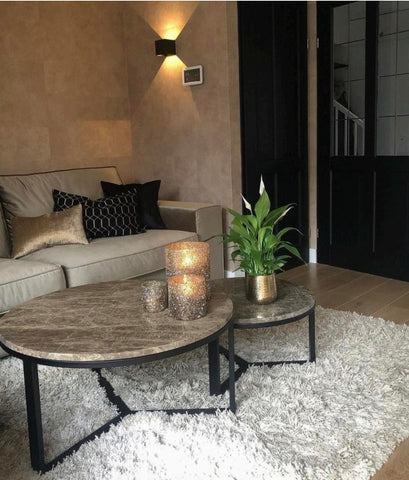 Mesa de Centro dos Niveles con estructura de Hierro y Mármol 100%  diseñado por Artesanos Poblamos.