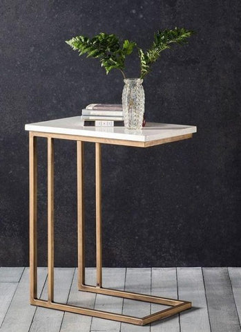 Mesa lateral de servicio de mármol y hierro 100% mexicana y elaborada por Artesanos Poblanos,.