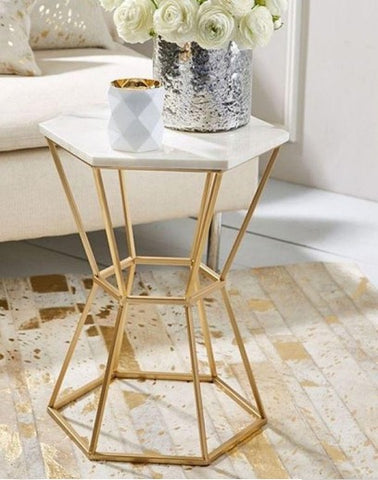 Mesa lateral de mármol y hierro 100% mexicana y elaborada por Artesanos Poblanos,.