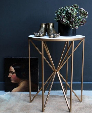 Mesa lateral de mármol y hierro 100% mexicana y elaborada por Artesanos Poblanos,.