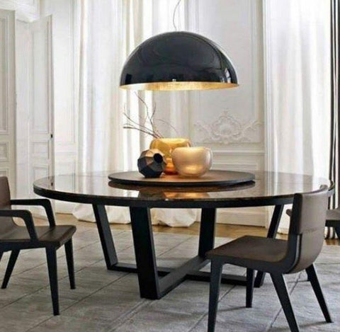 Mesa de comedor redondo premium de mármol y hierro 100% mexicana y elaborada por Artesanos Poblanos.