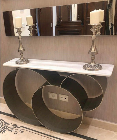 Mesa de Centro Redonda premium de mármol y hierro 100% mexicana y elaborada por Artesanos Poblanos.
