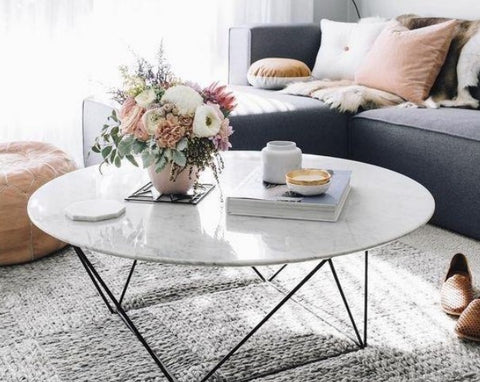 Mesa de Centro circular Plus de mármol y hierro 100% mexicana y elaborada por Artesanos Poblanos.