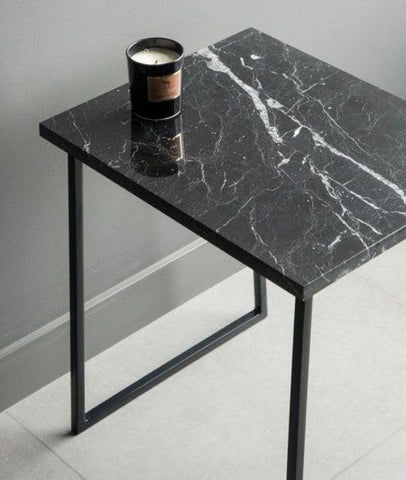 Mesa de Lateral premium de mármol y hierro 100% mexicana y elaborada por Artesanos Poblanos.