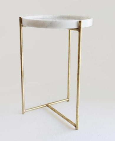 Mesa lateral de mármol y hierro 100% mexicana y elaborada por Artesanos Poblanos,.